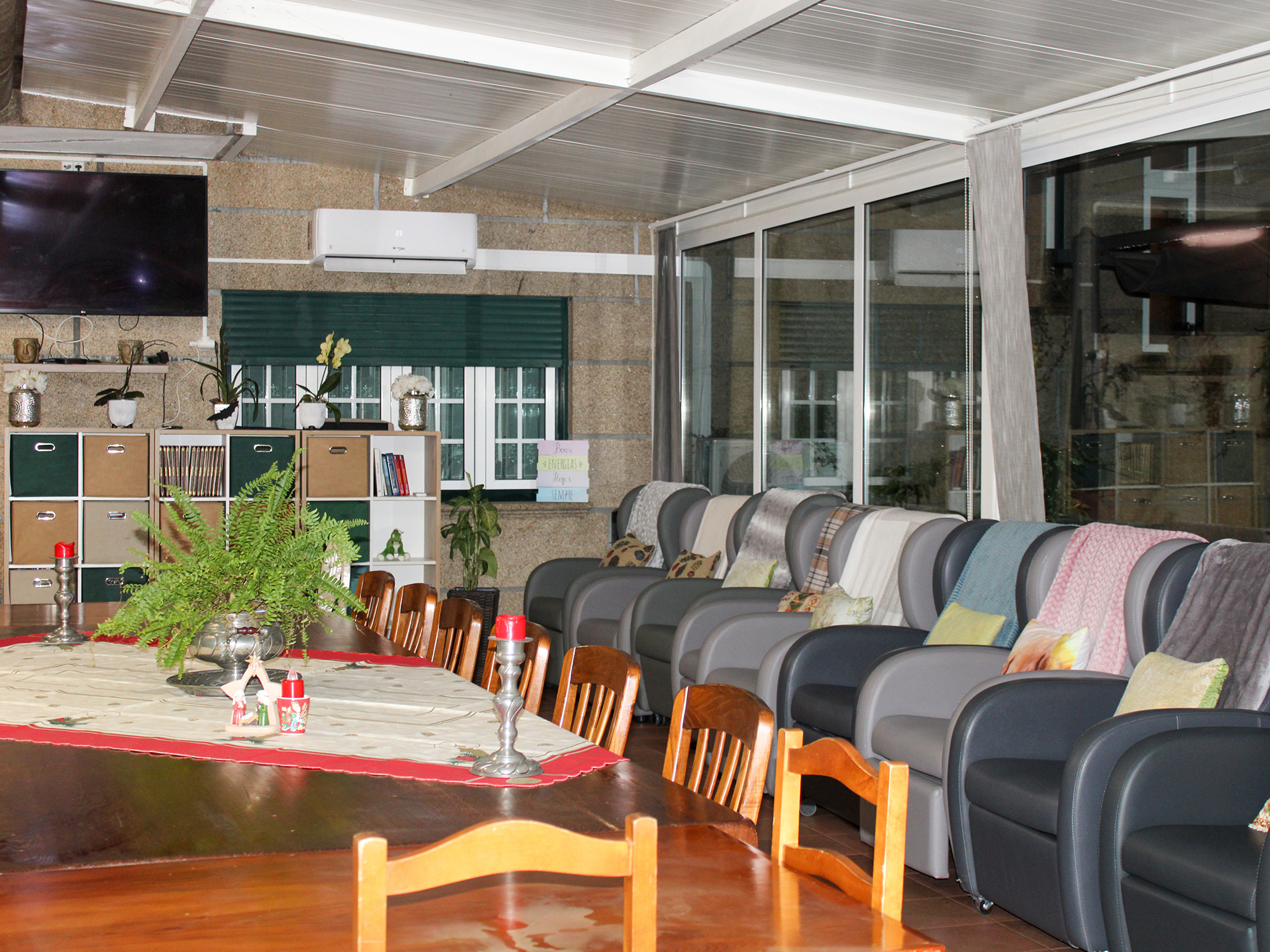 As nossas instalações foram cuidadosamente concebidas para assegurar segurança, acessibilidade e conforto, dispondo de quartos com capacidades variadas até quatro pessoas, amplos e adaptados às diferentes necessidades dos utentes. A instituição conta ainda com zonas comuns para convívio e lazer, salas de atividades, áreas de refeições partilhadas, e um espaço exterior ajardinado que convida ao descanso e ao contacto com a natureza.